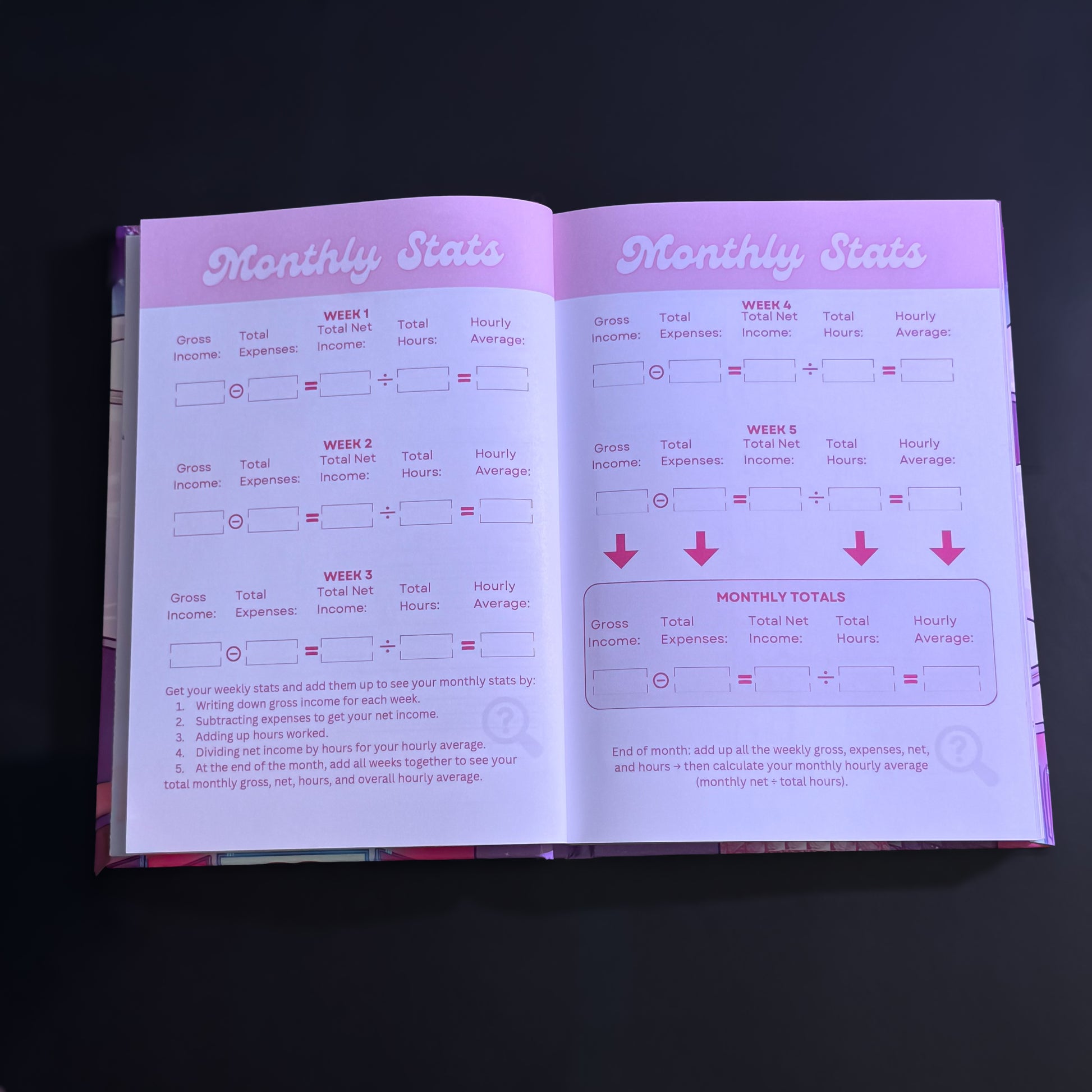 Premium hardcover planner shipped to your door. Track your shifts, tips, and income daily.